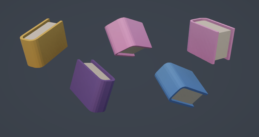 A small experiment with procedural generation. Everything in this scene (besides the UI) is generated from code at run time, so no textures or models. The vertex positions of the models are calculated and meshes created every time a bookcase is created.